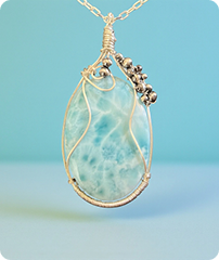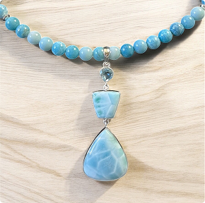 Beautiful Custom Larimar Necklace. Sterling Silver 925 wire wrap and sterling silver beads.
