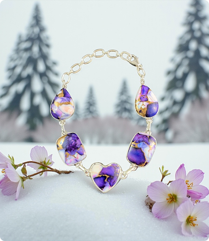 Sterling Silver Purple Rose Dahlia Bracelet