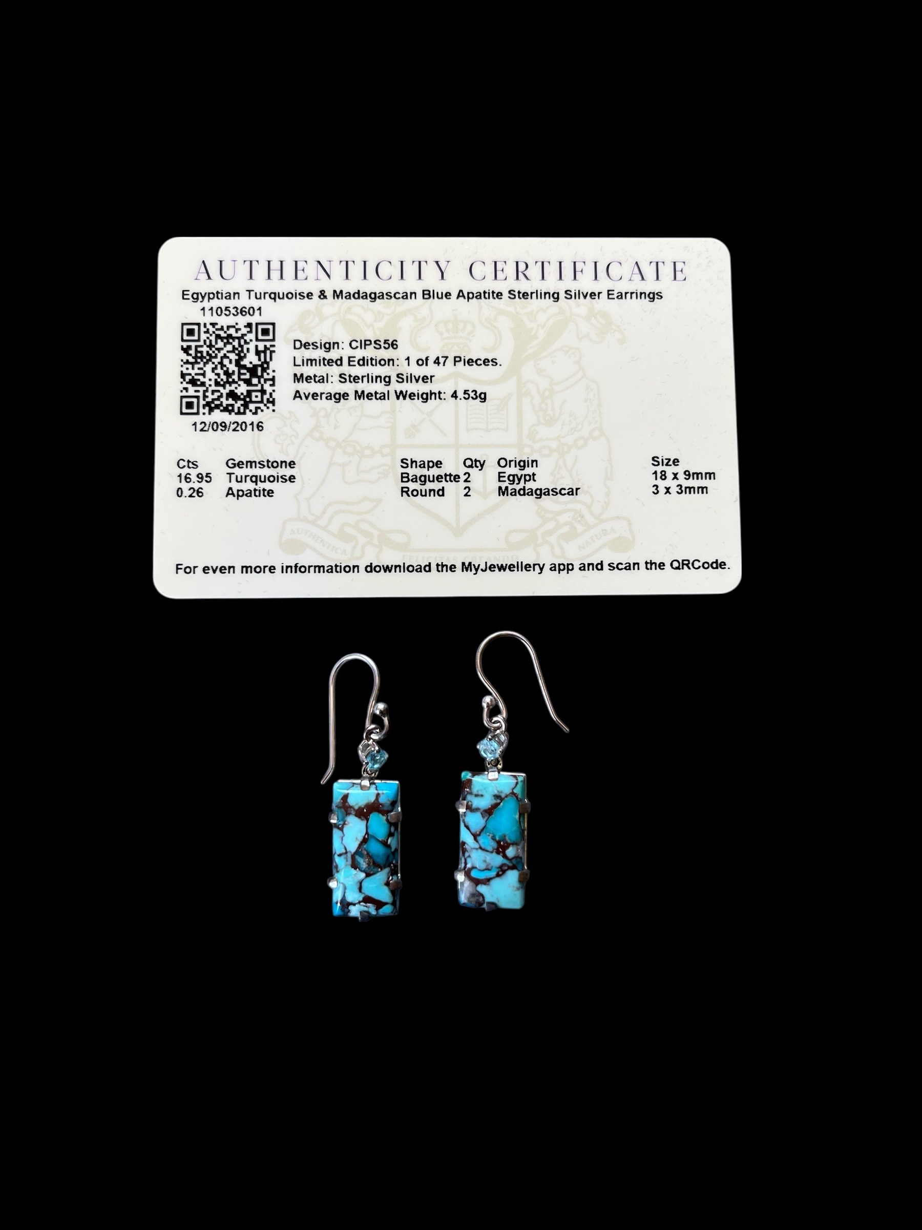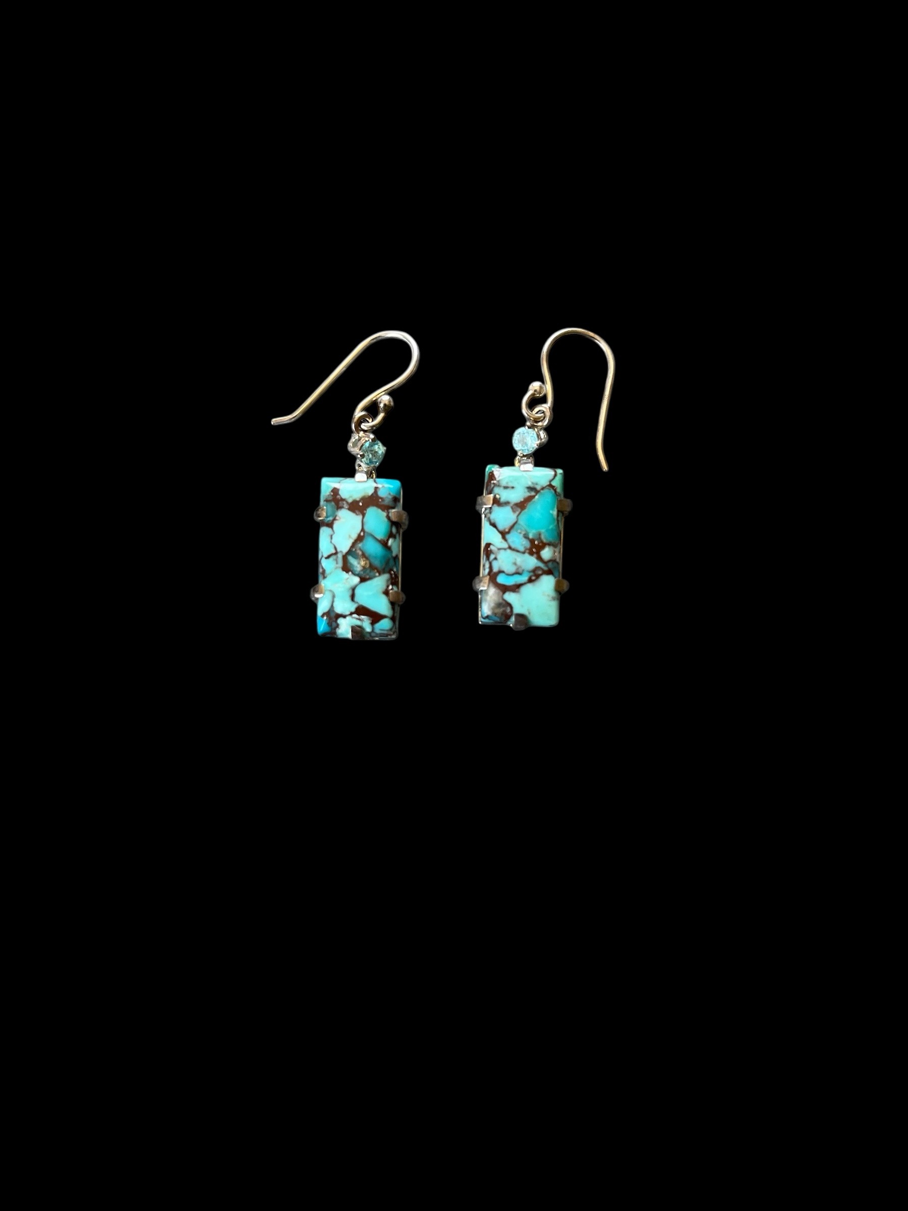 Home > Rare Stunning Egyptian Turquoise Earrings Accented with Madagascan Blue Apatite. Sterling Silver Ear Hooks.